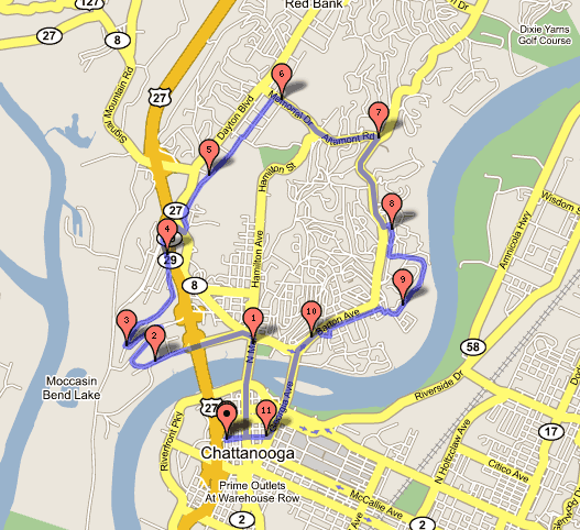 - Stay on Hixson Pike up hill toward Riverview